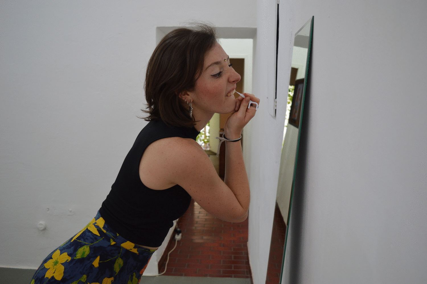 Woman with Salad is a work for a group of female performers who each concurrently enact a single gesture, repeated continuously for an hour. These gestures derive from images and animated GIFs found in commercial stock footage libraries that depict women engaged in actions such as laughing while holding food, looking into a mirror, brushing their hair or drinking a glass of wine. These commercially produced images, designed to be purchased and dispersed throughout the wider broadcast media, depict stereotypically female actions, while being aimed at the current advertising industry also echo the manual and domestic tasks that women perform in historical painting.